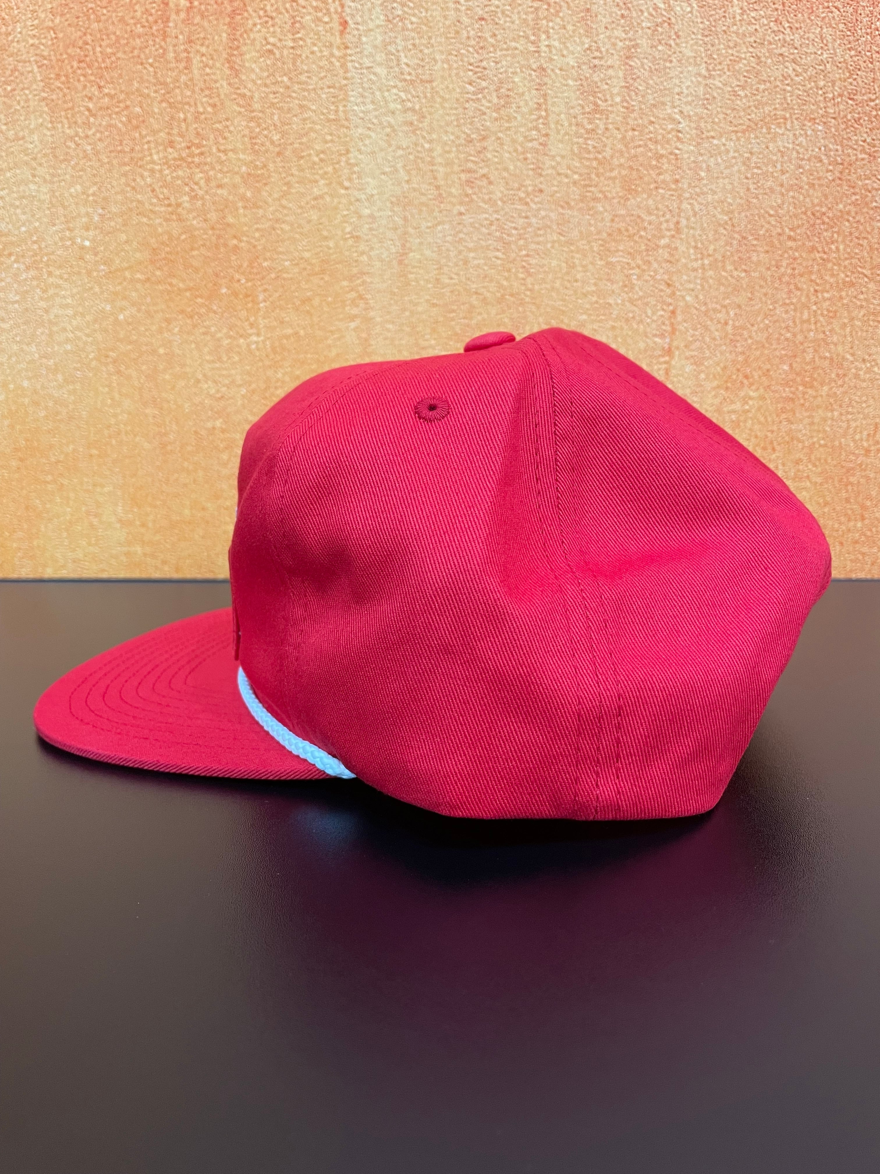 鮮やかなレッドのコットンツイルにホワイトの差し色がクラシックな雰囲気