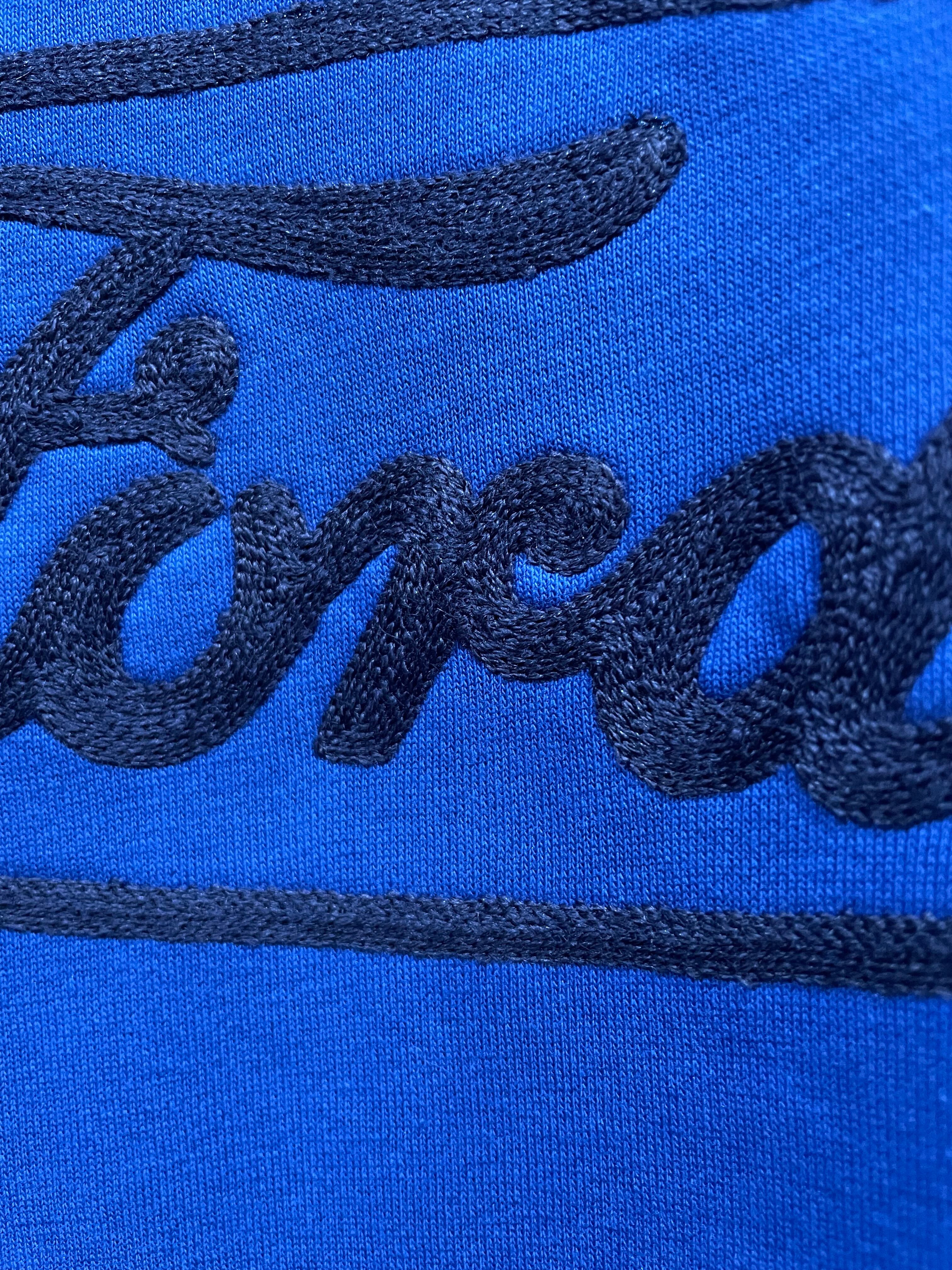 FORDロゴをチェーンステッチで大胆に胸元へ落とし込んだクルーネックスウェット
