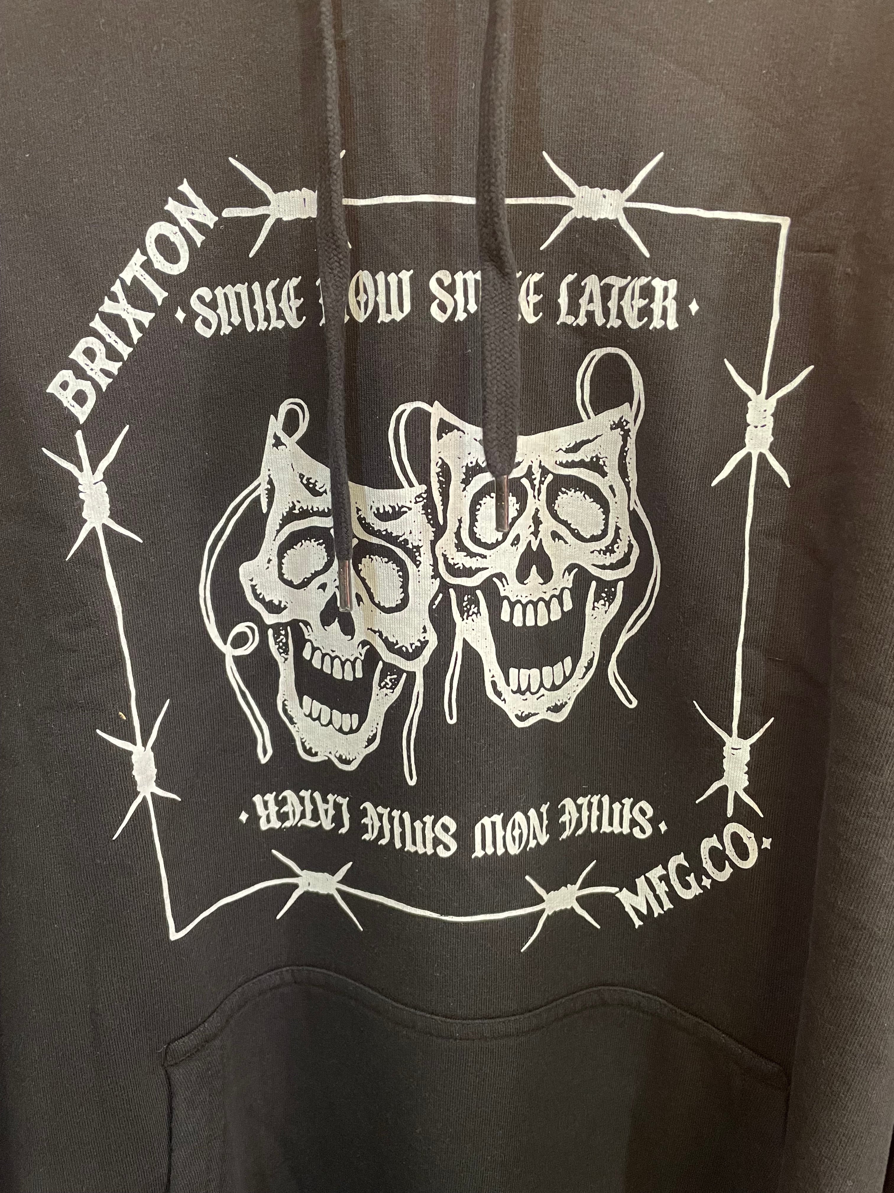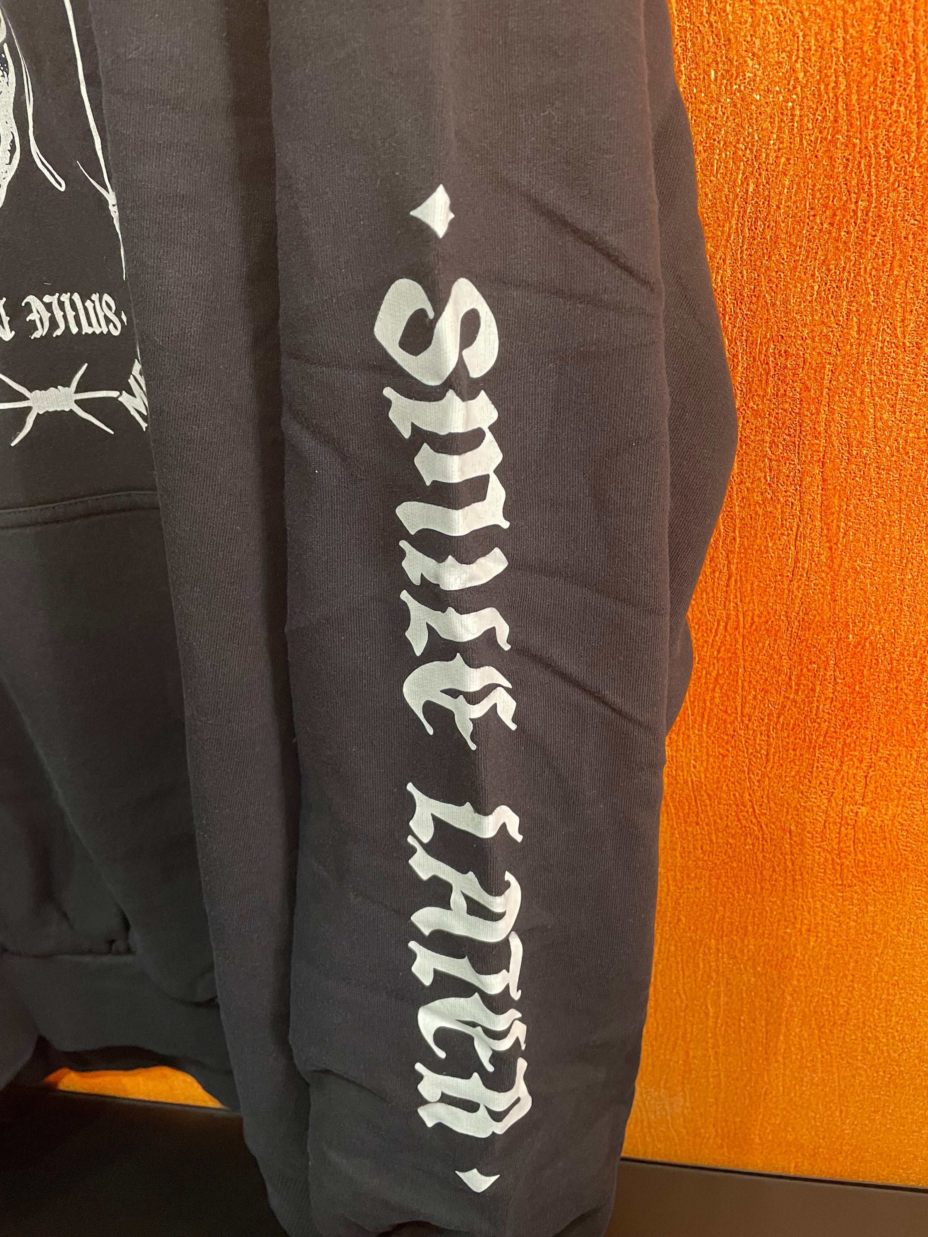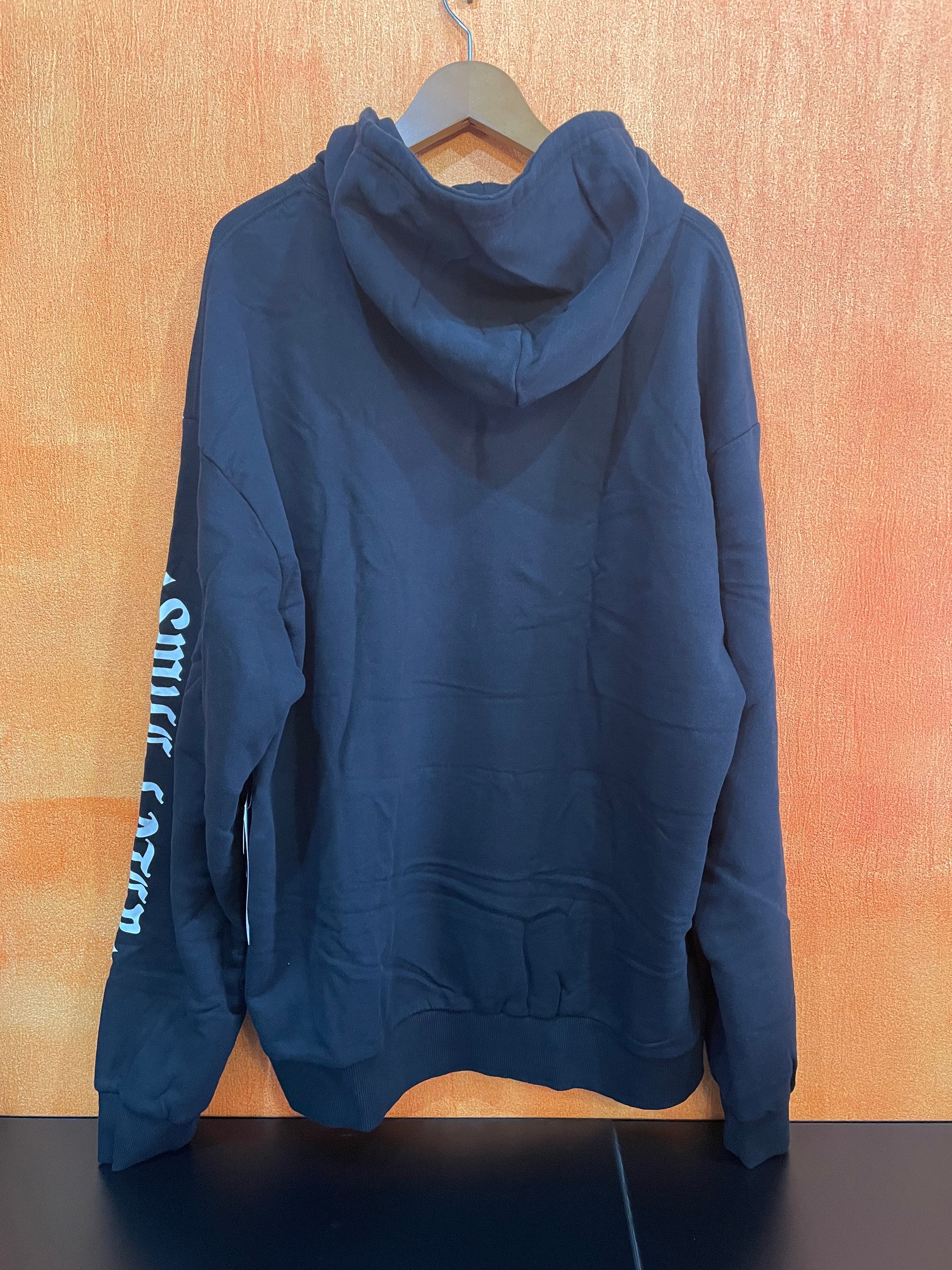 “SMILE NOW, SMILE LATER”のメッセージをあしらったフーディー