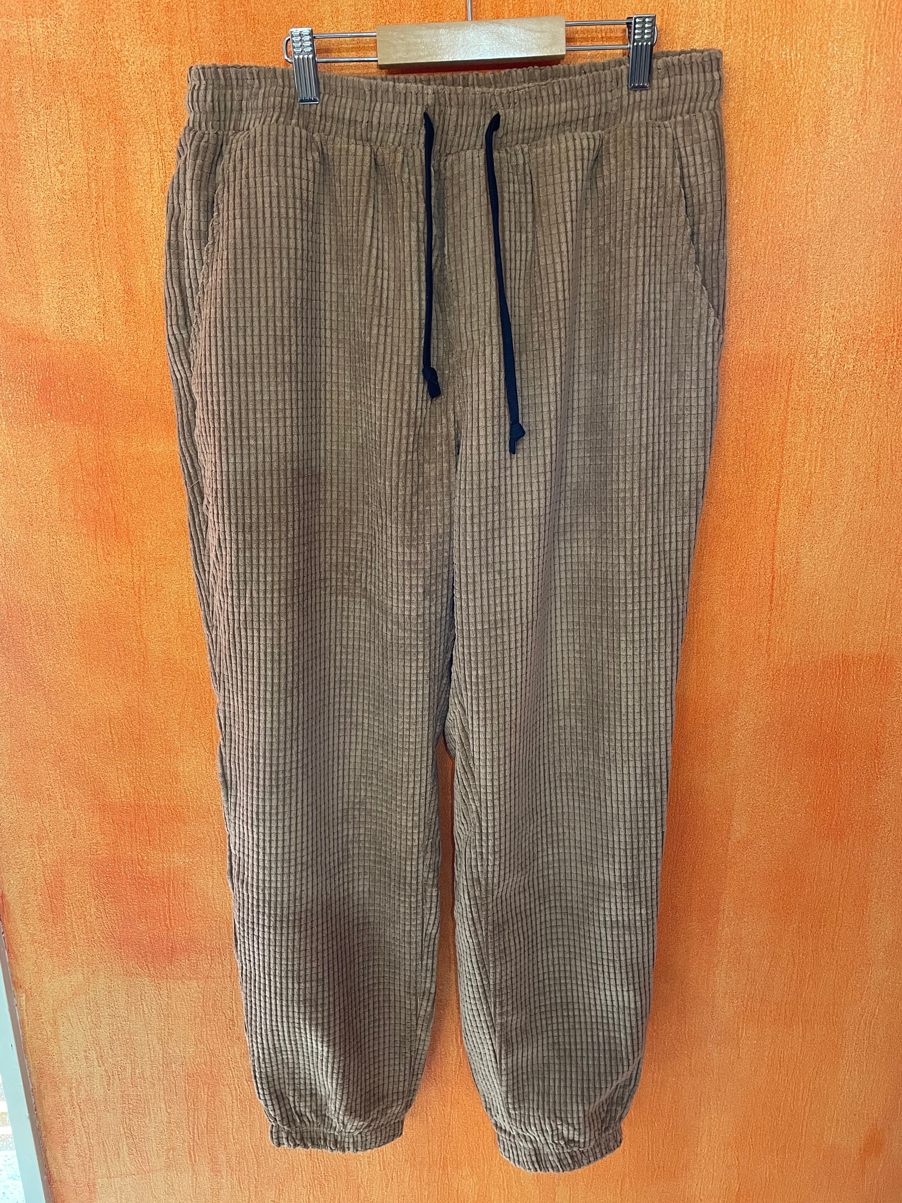 ブロック調の凹凸がある生地を採用したコットン素材のイージーパンツになります。