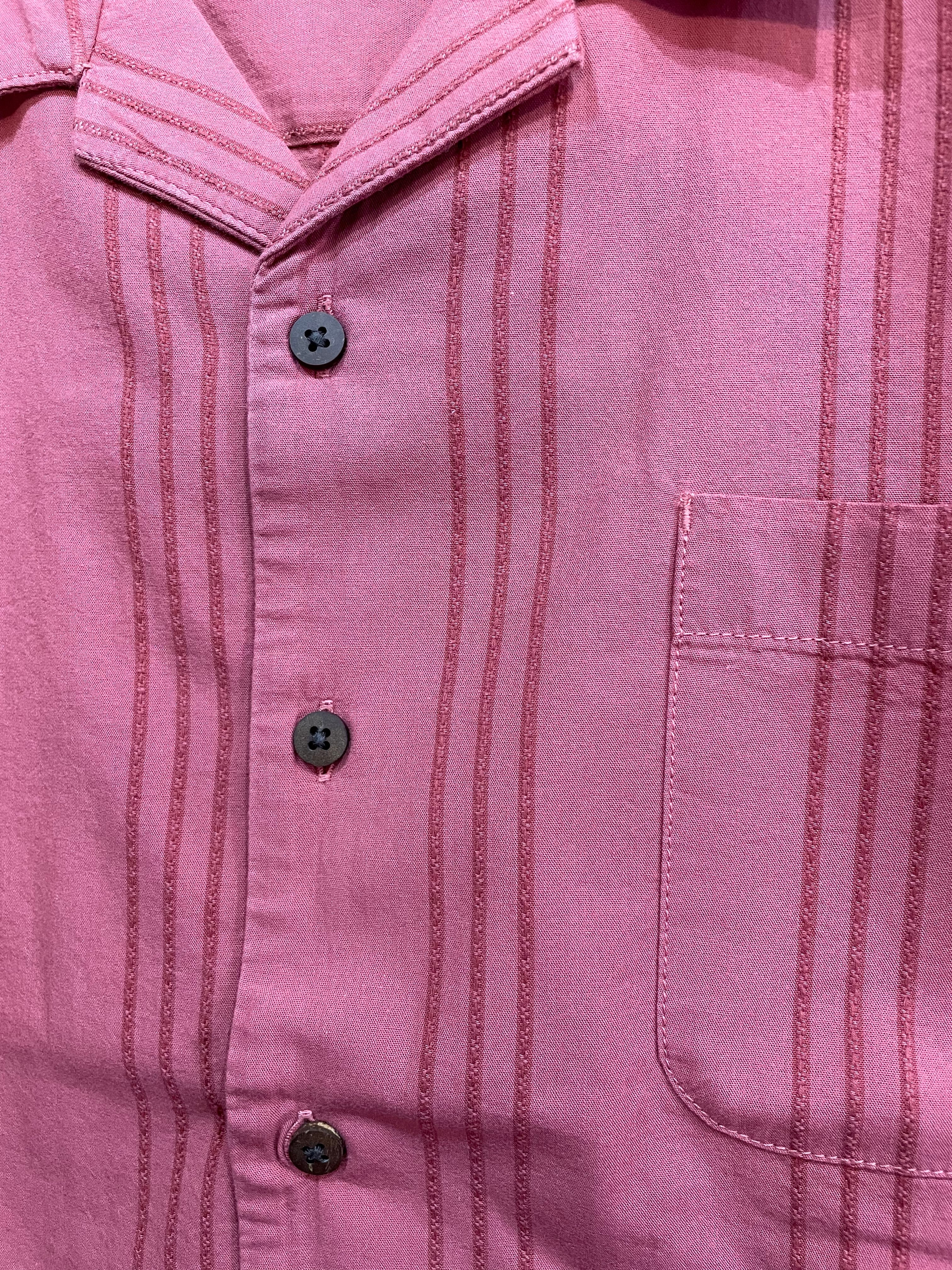 シックな色合いやステッチのストライプデザインなど、BRIXTONならではのアレンジを加えたボックスシルエットのオープンカラーシャツ
